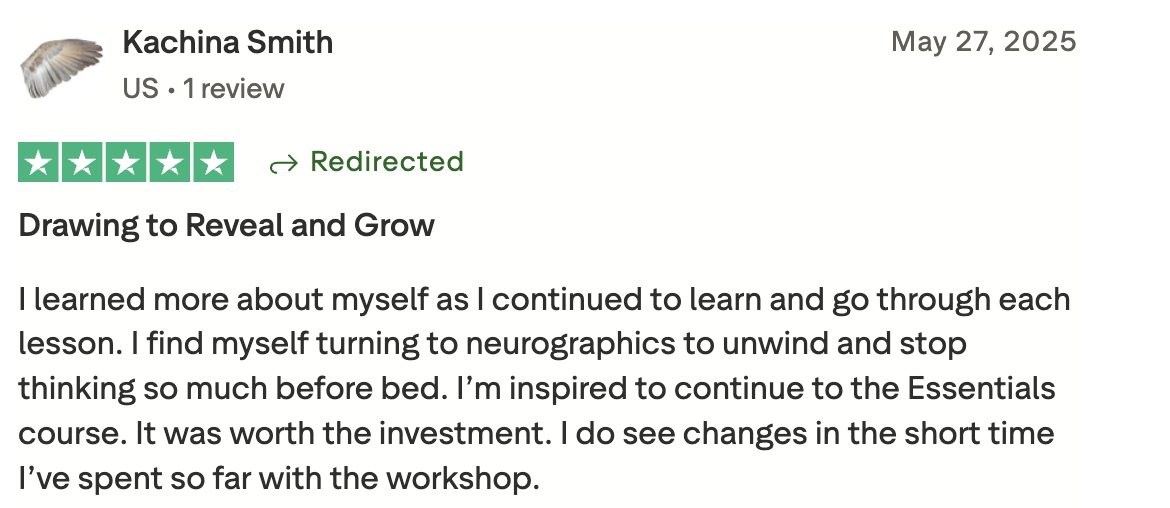 Start with Neurographics Essentials. It's the foundation that teaches you the basic lines, patterns, and techniques for transformation. You’ll experience results after the first drawing – more calm, clarity, and focus.